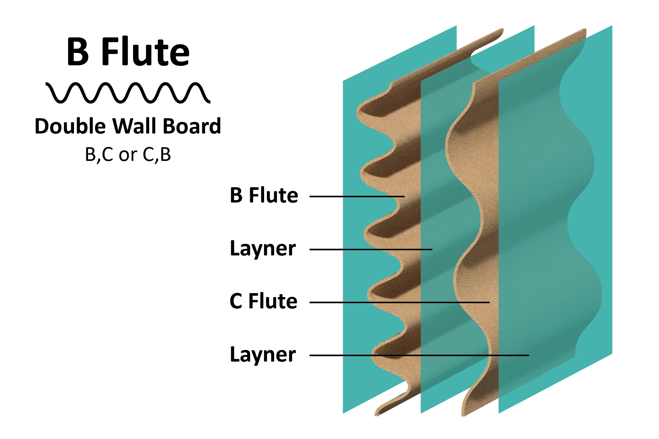 ورق سه لایه شامل یک لایه فلوت در میان دو لایه لاینر است. معمولا از هر سه فلوت C، B و E قابل سفارش است. این ورق استحکام مناسبی دارد و گزینهای ایدهآل برای ساخت جعبههای معمولی و کارتنهای بستهبندی محصولات با وزن متوسط به شمار میرود.